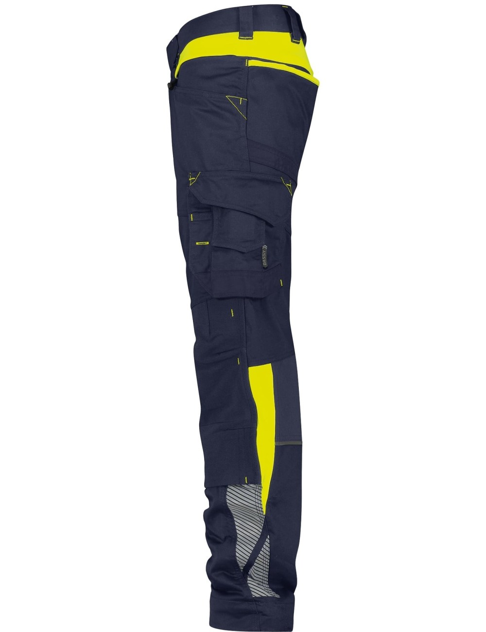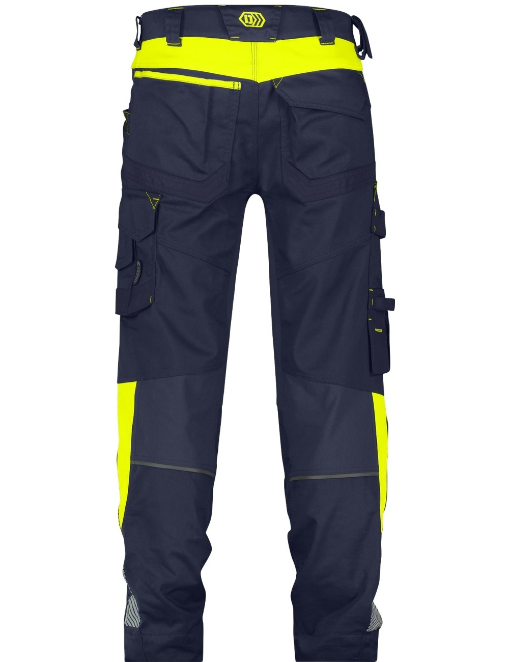 Stylish Dassy Canton work trousers from the new Logix collection, with elastic inserts, kneepad pockets and contrasting inserts in warning colors. Small reflective inserts guarantee safety when visibility is poor.