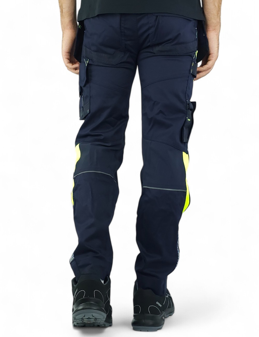 Dassy Shanghai work trousers with pocket bags from the Dassy Logix collection are a solid and interesting item in the wardrobe of every fan of workwear. Made of high-quality materials and designed in a modern style and colors, they are not only comfortable but also eye-catching! The 2-way stretch main fabric stretches nicely when worn, while 4-way stretch inserts in the crotch, back, knees and waist allow for freedom of movement while you work. The colors of the pants from the Logix collection are a real eye-catcher. Warning colors and reflective inserts improve safety, and the dark main color makes it easier to keep the pants clean. Dassy Shanghai work trousers have been sewn in a slim fit cut, they fit well but do not restrict movement even for users with wide thighs. A large number of practical pockets will keep all the necessary tools and equipment always within reach. Ruler pockets, knife pockets and a zipped side pocket allow you to safely store valuables such as keys or a mobile phone. The pants are equipped with pockets for inserts (knee pads). As standard, Dassy pants can be extended by 5 cm by undoing one thread on the leg finish.