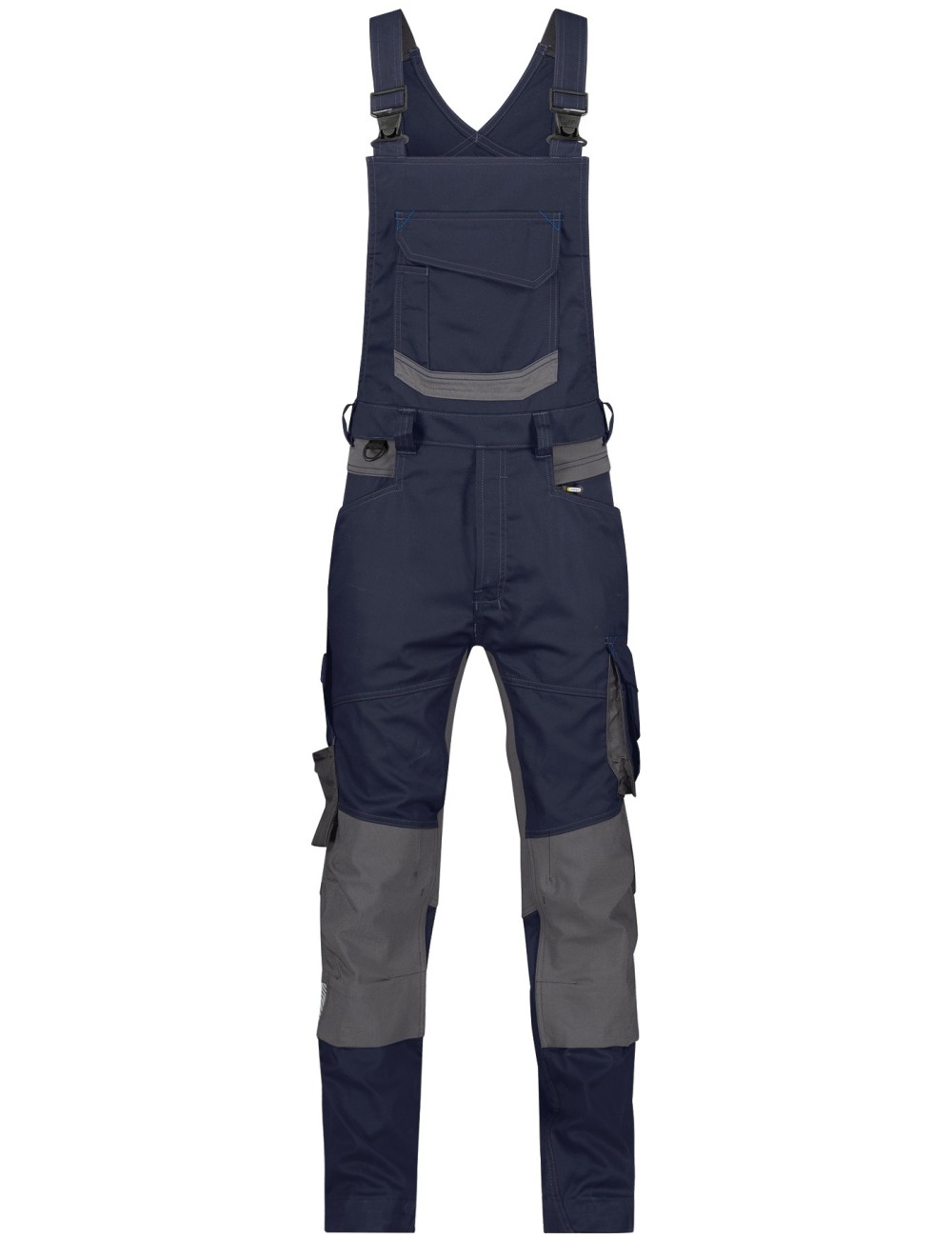 Dassy Tronix men's work dungarees with a well-fitting, modern cut. They are distinguished by an extremely flexible, comfortable material and numerous stretch inserts, making them much more comfortable than other work trousers of this type. Elastic panels are located not only on the sides, but also on the back below the waist, on the back of the knees and in the crotch. Adjustable pockets for knee pads made of strong Cordura are resistant to abrasion and damage.