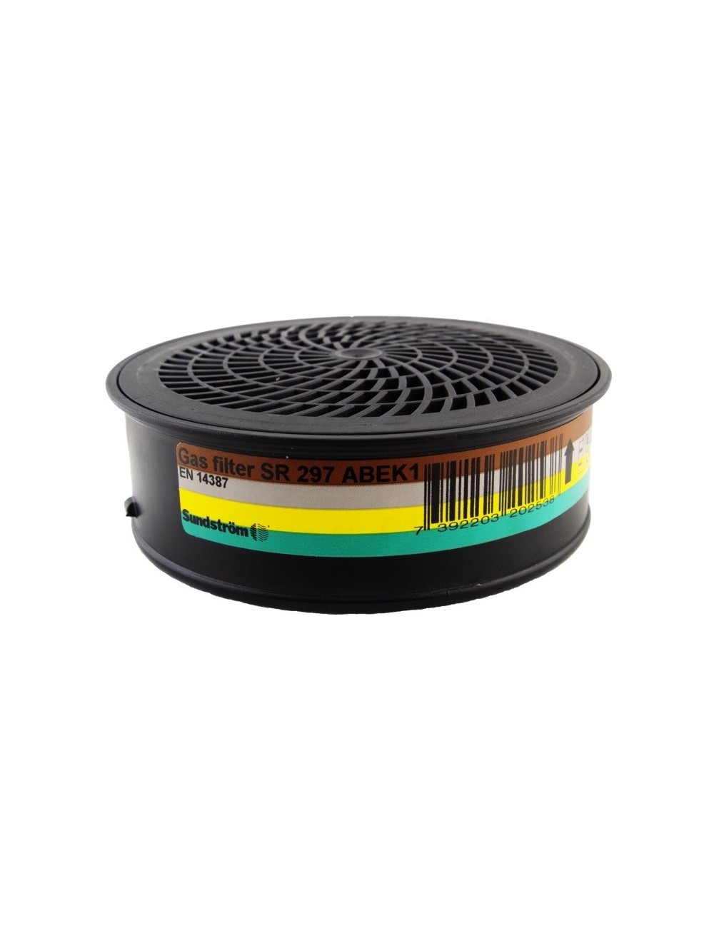 ABEK-type Sundstrom canister with impregnated activated carbon provides a high level of protection against various types of gases and vapors. It is possible to combine the product with a dust filter for additional protection against solid particles.