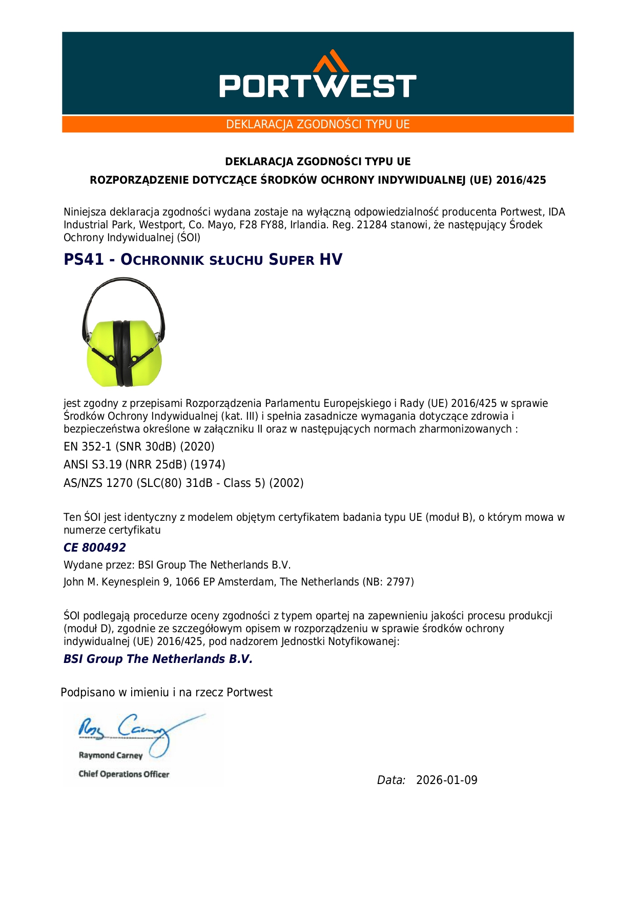 Portwest PS41 Super HV Hearing Protectors Product Features: