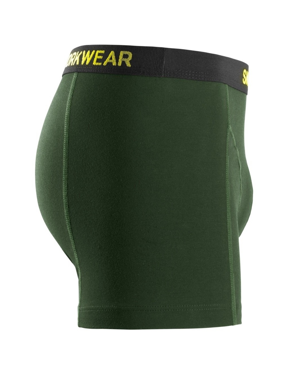 Extremely comfortable Snickers men's boxer shorts made of 95% cotton and 5% elastane with a heavy weight of 210 g/m2. The stretch fabric used ensures softness, great fit and high comfort. Boxer shorts are equipped with a wide, comfortable waistband, which is decorated with a contrasting manufacturer's logo. This model has durable, reinforced seams. Boxer shorts do not restrict freedom of movement and are perfect for everyday use. The set includes two pairs in color variants: black with navy blue or black with green.